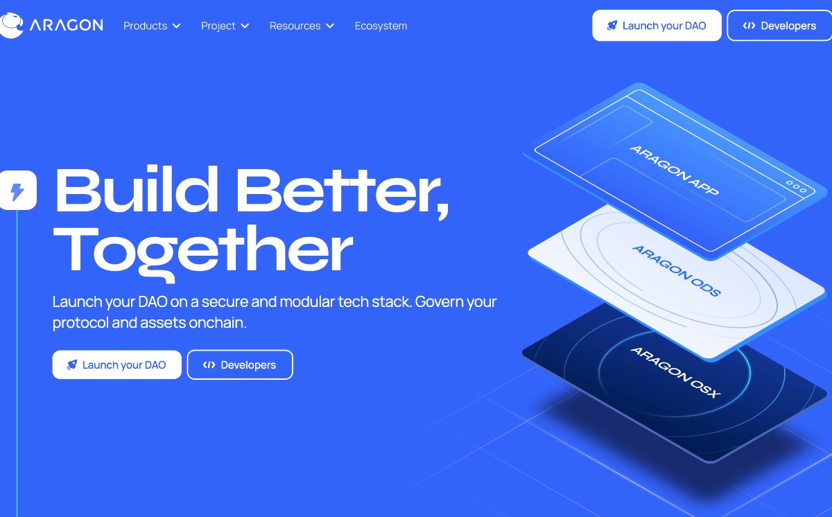 Aragonとは、プログラミングやブロックチェーンの専門知識がなくても、DAOを作成・運営することができる英語圏のツールです。このツールでは、DAO内での意思決定権を付与するガバナンストークンの発行と投票システムの作成、資金管理といった機能を備えています。