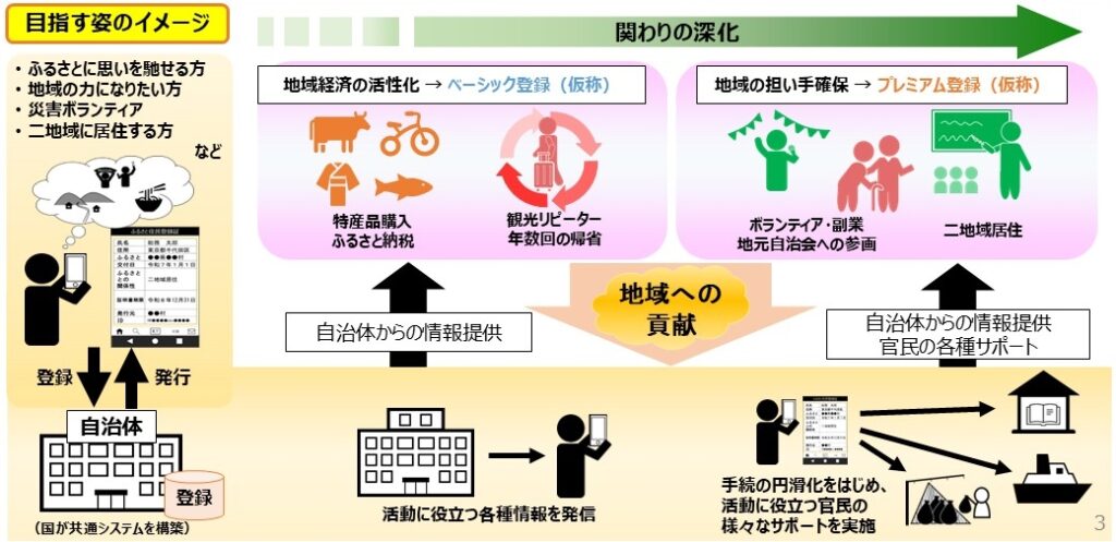 このような、二地域居住や関係人口が直面するリアルな課題を解決するために生まれたのが「ふるさと住民登録制度」です。2025年に総務省から発表されたこの制度は、単なるデジタル証明書の発行にとどまらず、関係人口1000万人という国家的規模での地方創生を目指す画期的な取り組みとして注目を集めています。