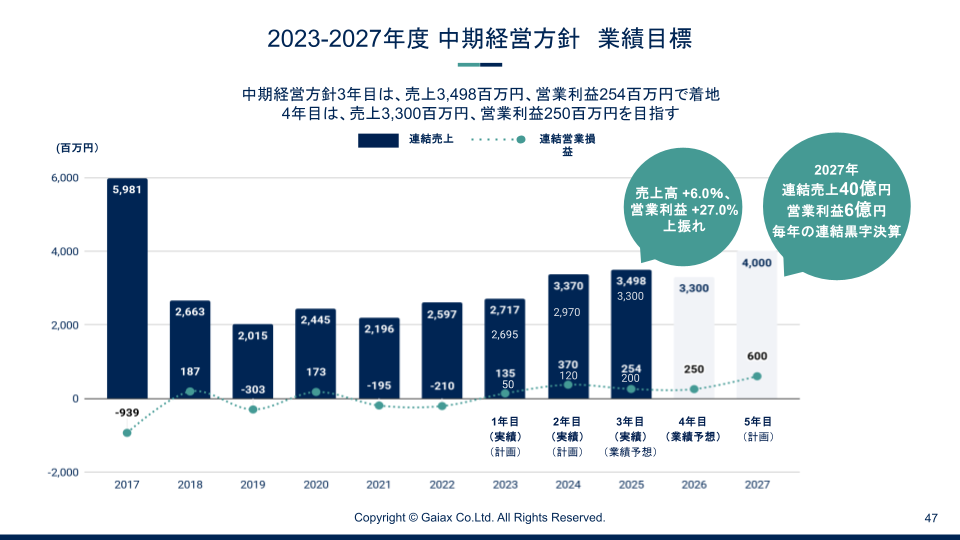 上田: 2027年の営業利益6億円という目標達成に向けて、現在はショートドラマやIPの創出、自治体からの受託案件など、中長期の成長に向けた仕込みに先行投資を行っている段階です。立ち上げにはコストがかかるため、2026年度は売上33億円、営業利益2.5億円という予想にしています。