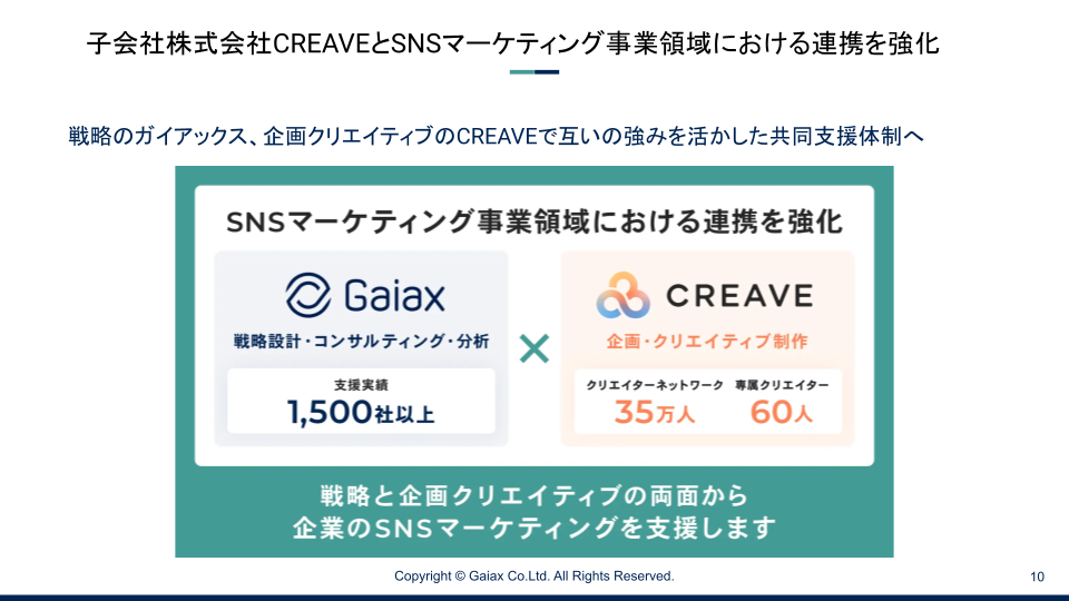 また、子会社のCREAVEとの事業連携を強化しており、当社の戦略・企画力(マネジメント)と、CREAVEのスピーディなクリエイティブ制作力を掛け合わせた強力な支援体制を構築しています。