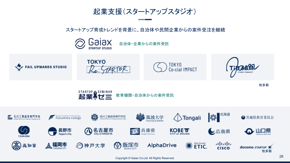 司会: 起業家輩出の支援として、自治体からの受託案件が増えているようですが、具体的な取り組みや他社との差別化ポイントを教えてください。