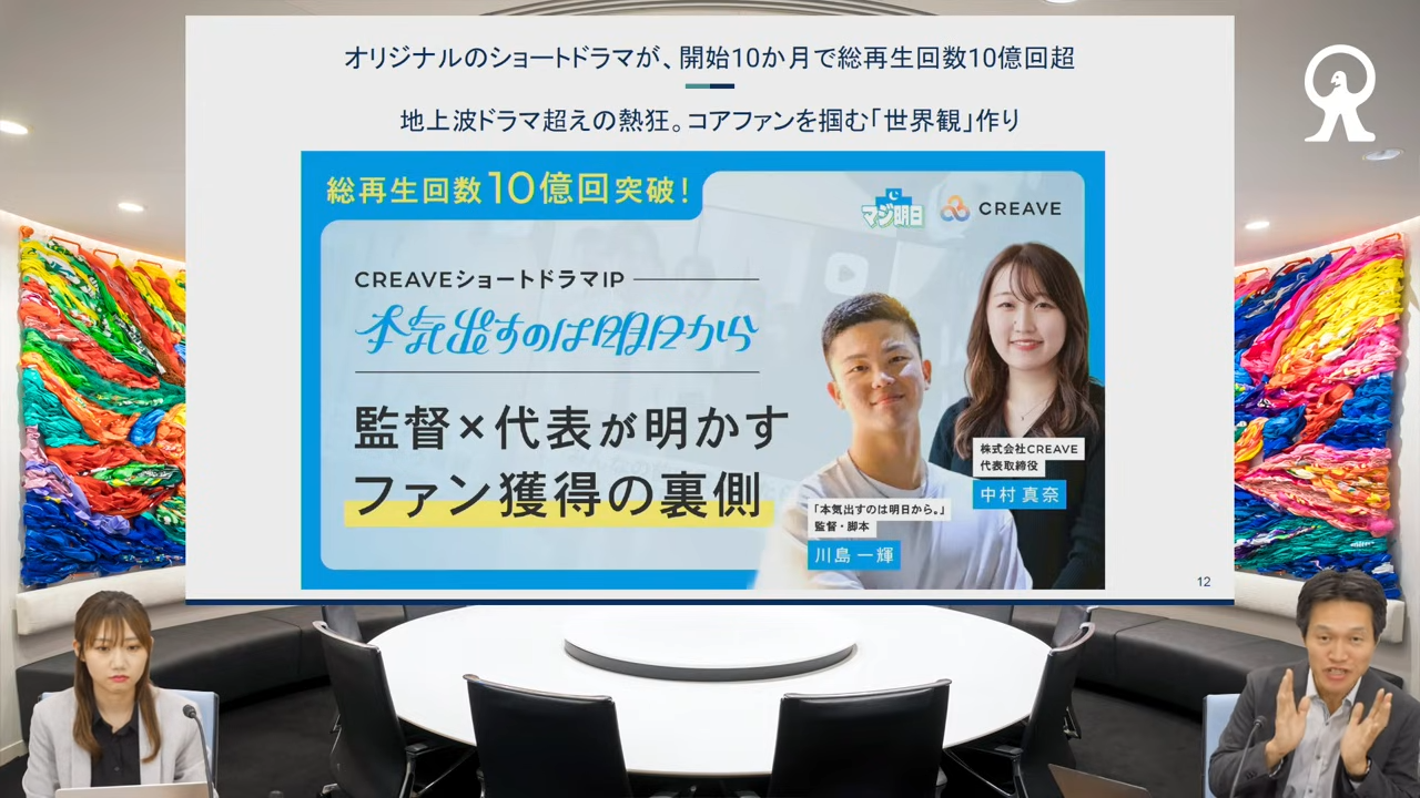 1分〜2分のドラマが日常的に流れてくる中で、同じ世界観・設定が継続し活かされるなど、撮影や構成に工夫があり、予算を抑えながら「次の展開が楽しみ」とファンをつくるノウハウを蓄積しています。視聴者がキャラクターに感情移入し、喜怒哀楽を持って熱狂的なファンになってくださっていると感じています。