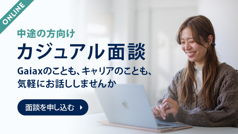 面接や学生向けイベントの企画といった業務はもちろんのこと、採用目標に対してどんな学生がどのようにしてガイアックスに入社するのが理想かというような採用における上流の戦略構築から携わりました。