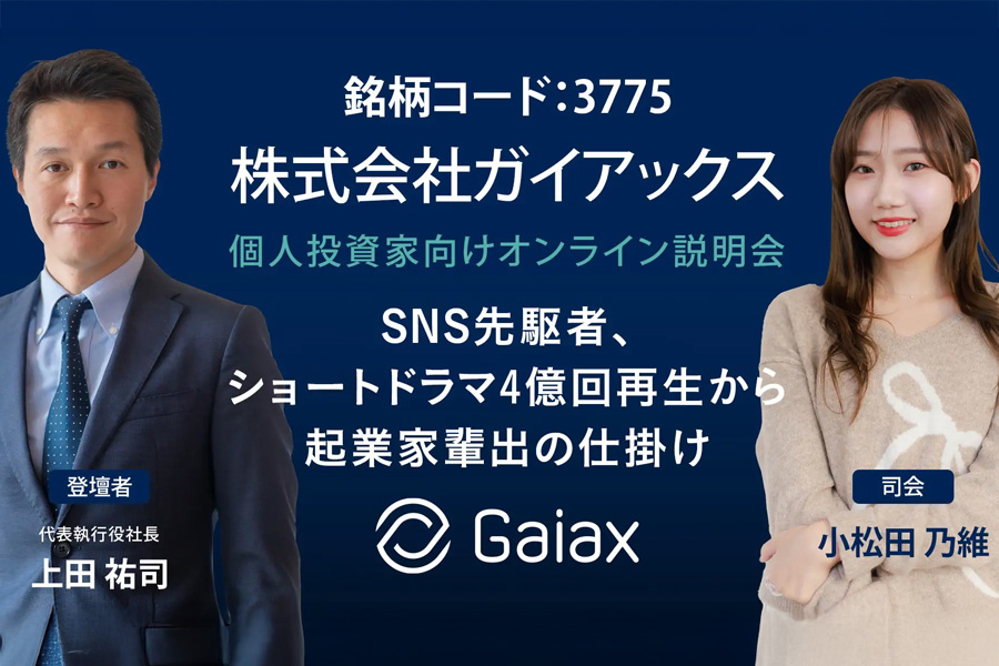 TOP ニュースルーム プレスリリース プレスリリースキーワードを入力してください検索 株式会社ガイアックスに関する最新のプレスリリースを掲載しています また、PR TIMES、IRサイトをご参照ください。 プレスリリースを受信する ガイアックスのプレスリリースガイアックス、SNS2025年総まとめ&2026年トレンド予測を発表2025年12月5日GAIAX PRESS RELEASE ガイアックス、石川・富山・福井の小学校〜高校を対象に起業家教育の講師を無償で派遣開始2025年12月4日GAIAX PRESS RELEASE ガイアックス、北陸発スタートアップ創出プラットフォームに共同研究機関として参画2025年11月19日GAIAX PRESS RELEASE ガイアックス、つくば市の中学生を対象に、筑波大学・つくば市と起業をテーマにした5日間のプログラムを開催2025年11月7日GAIAX PRESS RELEASE ガイアックス、CEATEC 2025に「高弾性なweb3デジタルツインプロジェクト」として産学でブース出展2025年10月14日GAIAX PRESS RELEASE 三豊の商店街DAO、1ヶ月で800万円の出資集まる!2,000万円の着地を目指す2025年9月25日GAIAX PRESS RELEASE もっと読むガイアックスグループのプレスリリースPlanetLabs、瀬戸内・倉敷市下津井にて北前船交易で栄えた歴史的建造物「中西家住宅」再生プロジェクトへの募集支援を開始2025年12月3日GAIAX GROUP PRESS RELEASE 熊野古道・那智勝浦の無住職寺院再生プロジェクト、出資者の8割が海外2025年12月1日GAIAX GROUP PRESS RELEASE PlanetDAO、熊野古道・那智勝浦で無住職寺院再生プロジェクトを始動2025年10月29日GAIAX GROUP PRESS RELEASE ガイアックス、HRテック事業の連続的創出へ向け、株式会社MatkaをM&A2025年10月28日GAIAX GROUP PRESS RELEASE 総再生回数4億回超突破『マジ明日』に見るショートドラマ戦略を徹底解説2025年10月23日GAIAX GROUP PRESS RELEASE PlanetDAO佐渡、開始1ヶ月で国内外から2,800万円の出資申込2025年10月17日GAIAX GROUP PRESS RELEASE もっと読む GAIAX PRESS RELEASE ガイアックスのプレスリリースガイアックス、SNS2025年総まとめ&2026年トレンド予測を発表2025年12月5日GAIAX PRESS RELEASE ガイアックス、石川・富山・福井の小学校〜高校を対象に起業家教育の講師を無償で派遣開始2025年12月4日GAIAX PRESS RELEASE ガイアックス、北陸発スタートアップ創出プラットフォームに共同研究機関として参画2025年11月19日GAIAX PRESS RELEASE ガイアックス、つくば市の中学生を対象に、筑波大学・つくば市と起業をテーマにした5日間のプログラムを開催2025年11月7日GAIAX PRESS RELEASE ガイアックス、CEATEC 2025に「高弾性なweb3デジタルツインプロジェクト」として産学でブース出展2025年10月14日GAIAX PRESS RELEASE 三豊の商店街DAO、1ヶ月で800万円の出資集まる!2,000万円の着地を目指す2025年9月25日GAIAX PRESS RELEASE もっと読む GAIAX GROUP PRESS RELEASE ガイアックスグループのプレスリリースPlanetLabs、瀬戸内・倉敷市下津井にて北前船交易で栄えた歴史的建造物「中西家住宅」再生プロジェクトへの募集支援を開始2025年12月3日GAIAX GROUP PRESS RELEASE 熊野古道・那智勝浦の無住職寺院再生プロジェクト、出資者の8割が海外2025年12月1日GAIAX GROUP PRESS RELEASE PlanetDAO、熊野古道・那智勝浦で無住職寺院再生プロジェクトを始動2025年10月29日GAIAX GROUP PRESS RELEASE ガイアックス、HRテック事業の連続的創出へ向け、株式会社MatkaをM&A2025年10月28日GAIAX GROUP PRESS RELEASE 総再生回数4億回超突破『マジ明日』に見るショートドラマ戦略を徹底解説2025年10月23日GAIAX GROUP PRESS RELEASE PlanetDAO佐渡、開始1ヶ月で国内外から2,800万円の出資申込2025年10月17日GAIAX GROUP PRESS RELEASE もっと読む