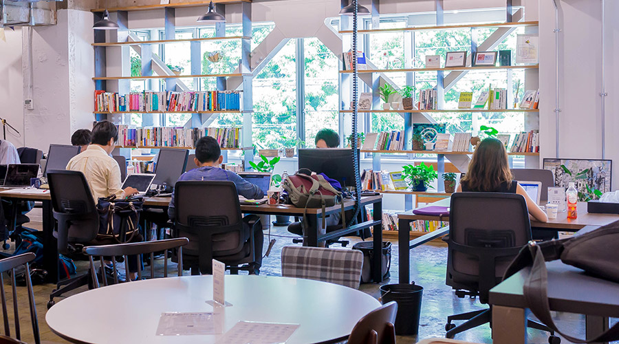 2017年の「テレワークデイ」をきっかけに、ガイアックスはテレワークおよび社内フリーアドレスを徹底した結果、従来のオフィススペースが二分の一に縮小しました。その空いたスペースを4月には社外との交流促進を目指すシェアスペースとしていました。